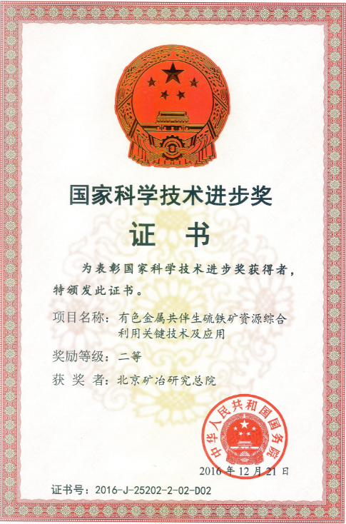 | 3 | 2016 | 國(guó)家級(jí) | 國(guó)家科技進(jìn)步獎(jiǎng) | 2 | 國(guó)務(wù)院 | 有色金屬共伴生硫鐵礦資源綜合利用關(guān)鍵技術(shù)及應(yīng)用 |